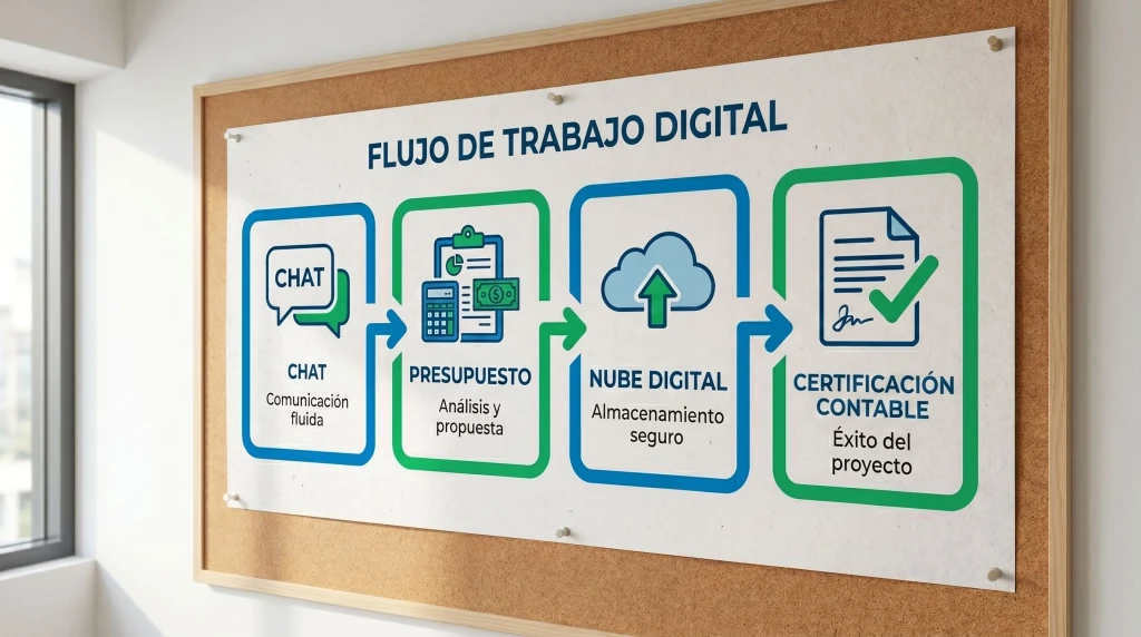 3. Gestión: Una vez aprobado el presupuesto, recibís la lista de requisitos y enviás todo de forma digital.